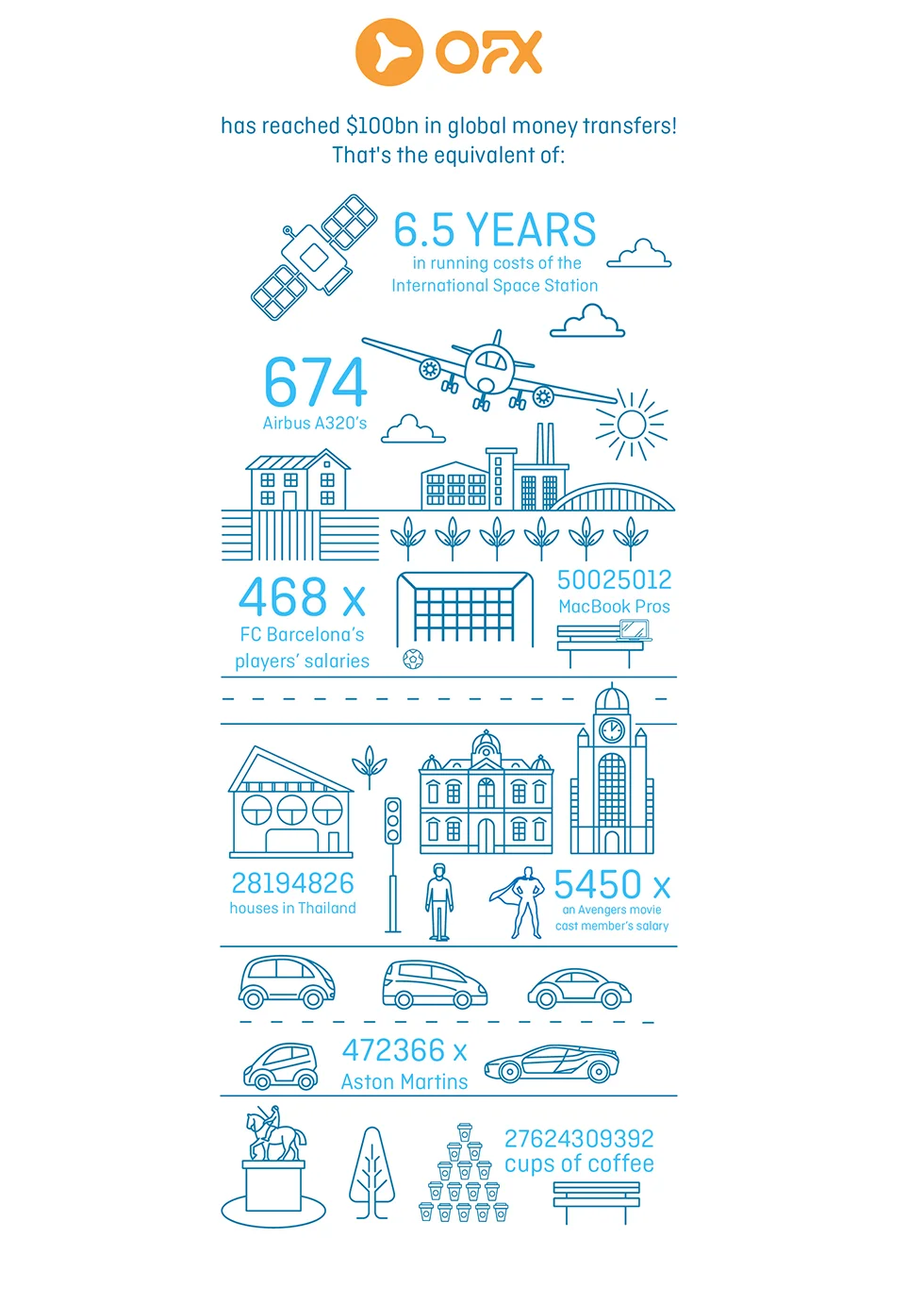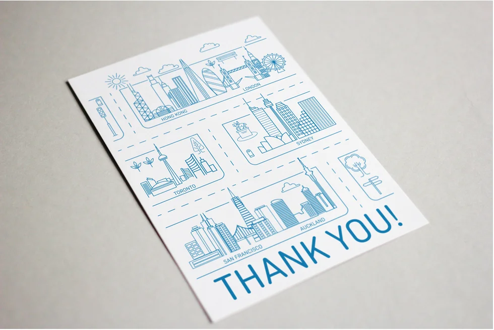 This illustration was created in the OFX style to give representation to the various cities OFX has global offices in.